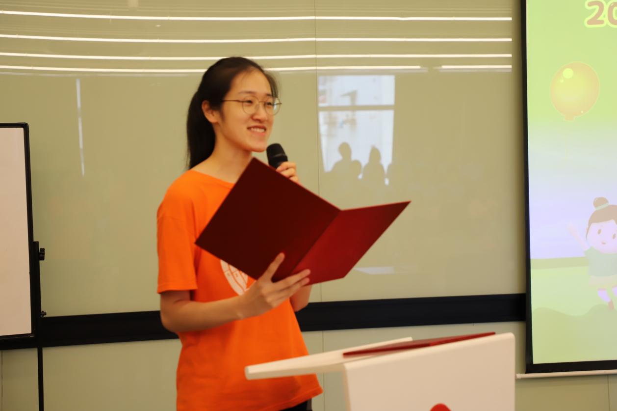 班主任代表邵敏怡表示自己已经是第四次来暑托班担任志愿者,并分享了她将理论知识转化为社会实践的收获与感动,表达了在2025年爱心暑托班中倾情奉献、“寓教于乐”,继续为孩子们创造有意义学习体验的承诺。