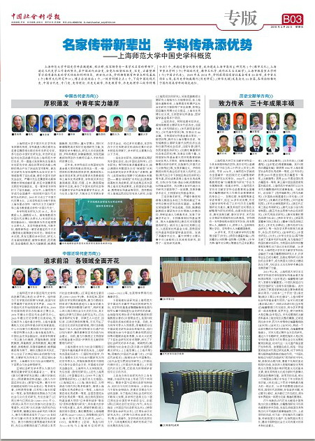 上海师范大学中国史学科在魏建猷、程应镠、张家驹等老一辈学术名家的带领下,通过几代史学工作者的努力,在中国近代社会史、会党与秘密结社史、宋史、古籍整理等方面有着优良的学术传统和科研传承。新世纪以来,学科拥有教育部重点研究基地1个(都市文化研究中心)、博士后流动站1个、一级学科博士点1个,下设中国近现代史、中国古代史、专门史、史学理论、历史文献学、历史教育学、历史地理学二级学科博士点7个,并通过整合优势力量,各学科合作,成功建成上海市高校E研究院1个(都市文化)、上海市重点学科3个(中国近代史、都市文化学、域外汉文古文献学)、上海市教委重点学科1个(中国古代史)。2009年至2014年,学科获得国家哲社基金项目20余项,其中重大项目5项,在历史学权威期刊《历史研究》、《新华文摘》发表论文10余篇,各项指标都处于国内同类学科的领先地位。