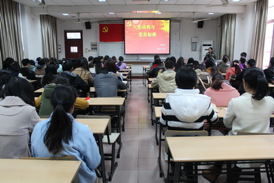 11月25日下午,人文与传播学院研究生党章学习小组首堂党课在徐汇校区三教201举行,吸引了八十余名研究生参加。学院徐汇校区党建联络员、研究生辅导员王雅婷老师作题为《端正入党动机,积极向党组织靠拢》党课教育。