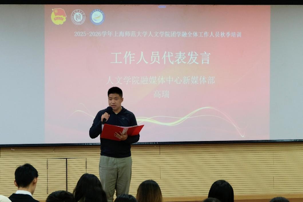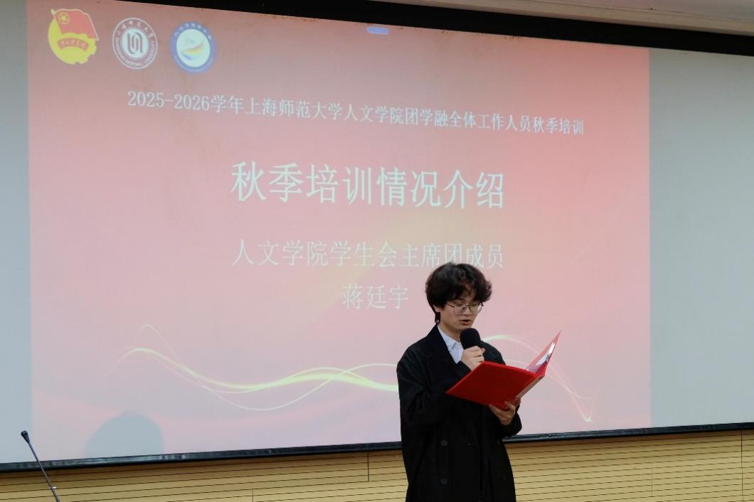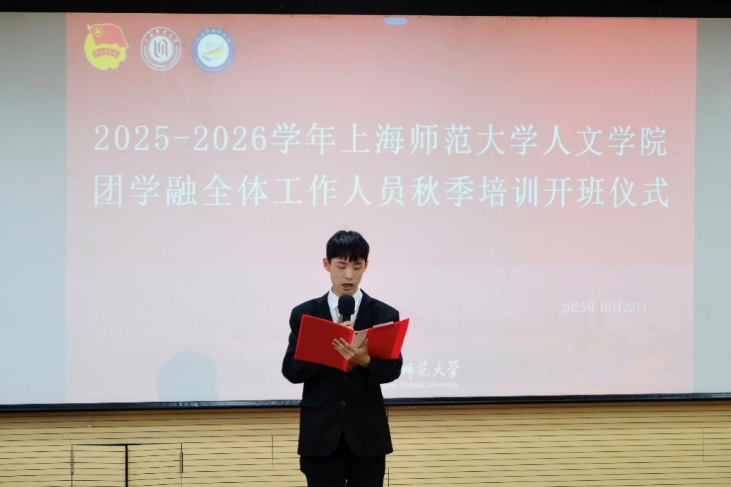 10月22日16:00-16:20,人文学院2025-2026学年团学融工作人员秋季学期培训开班仪式在奉贤校区第二教学楼102举行。