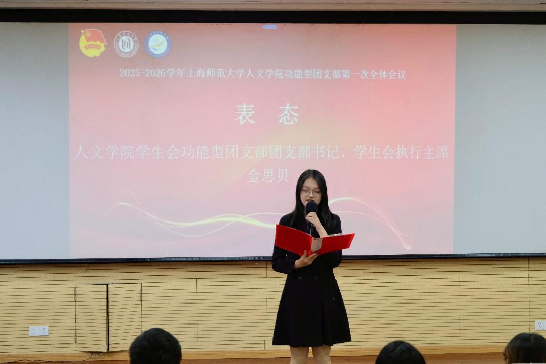 10月22日17:20,上海师范大学人文学院学生会功能型团支部成立大会召开。人文学院团委书记陈若千老师宣读了《关于同意成立上海师范大学人文学院学生会功能型团支部的复函》,正式宣布团支部成立。随后,经过民主投票,选举产生了团支部书记金思贝,团支部副书记蒋廷宇,组宣委员孙璜奕。