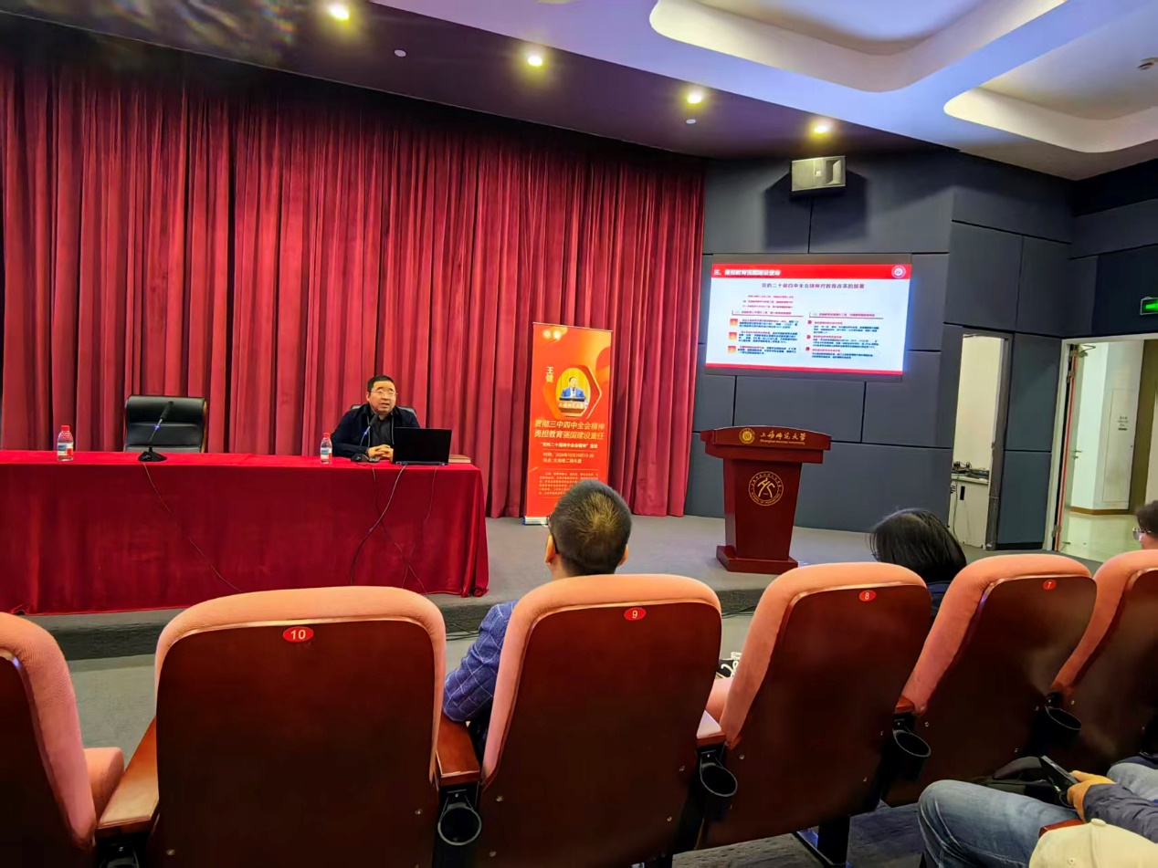 潘黎勇在总结中谈到,王健教授的报告紧密结合上海实际,从人口结构、师资建设、学科布局、人才培养等方面提出具体改革思路,具有现实针对性和前瞻性。通过此次专题学习,学院全体教职工对党的二十届四中全会精神有了更全面、更深入的理解,对自身肩负的教育强国建设使命有了更清晰、更紧迫的认识。他号召大家将学习成果转化为推动工作的强大动力和实际成效,坚定不移地贯彻党的教育方针,聚焦主责主业,深化教育教学改革,提升管理服务效能,以更加昂扬的斗志、更加务实的作风,投身于建设教师教育领先的高水平综合性大学的事业中,为服务国家战略、助力上海城市发展、全面推进中华民族伟大复兴贡献智慧和力量。