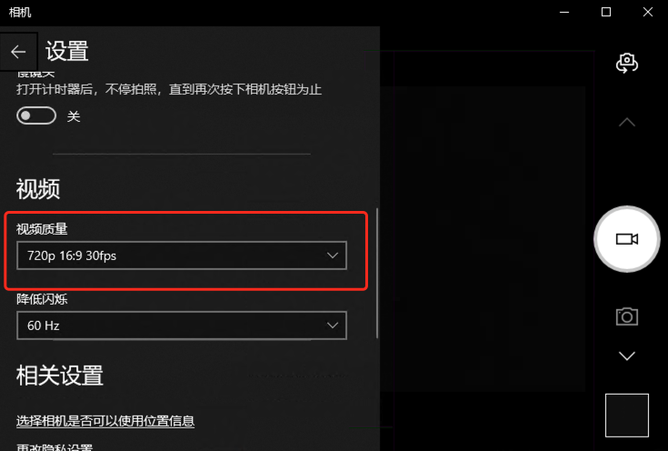 按左上方的“设置”按钮开启设置界面,在这里可以更改视频的分辨率。
