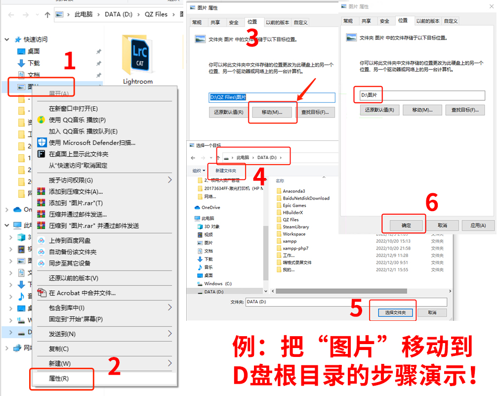 可以通过“图片”属性中的“位置”选项卡,把“图片”文件夹移动到其他盘符,以节约C盘空间。(如下图。此操作涉及到系统文件夹,请谨慎操作)