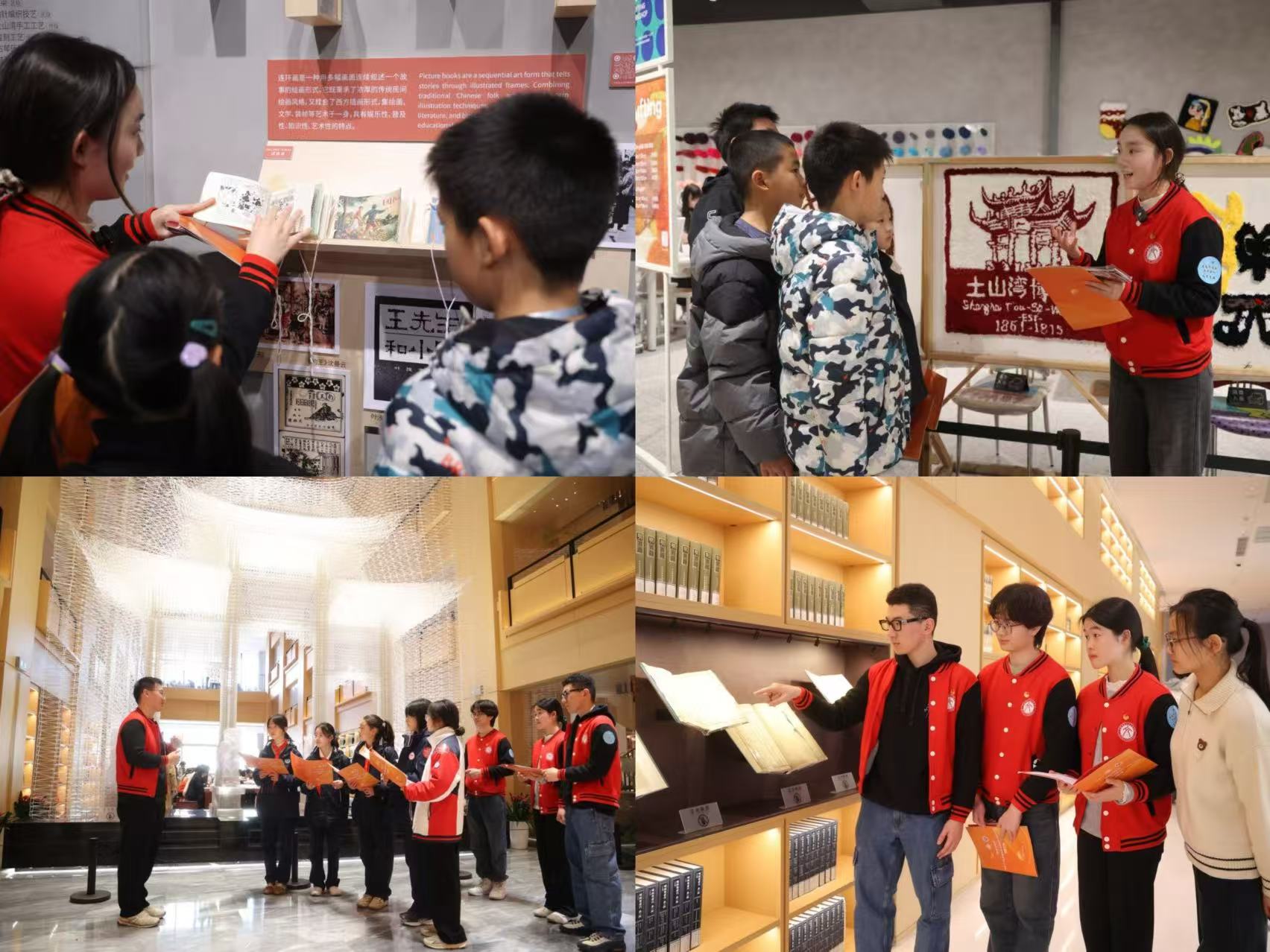 徐家汇书院是融历史文脉、现代设计、公共教育与社区生活于一体的文化综合体,更是“空间可成长”的创新典范。宣讲团成员带领小学生穿梭“东西公园”“光启之门”,感知文化传承与创新;带领中学生从“海上书桌”到“万象本色”瓷器特展,自主拓展知识边界;带领大学生从建筑美学、空间功能出发,探讨“光启之门”文脉象征与书院对“全民阅读”的推动作用。他们在行走实践中,感悟“文化是城市的灵魂”这一论断。