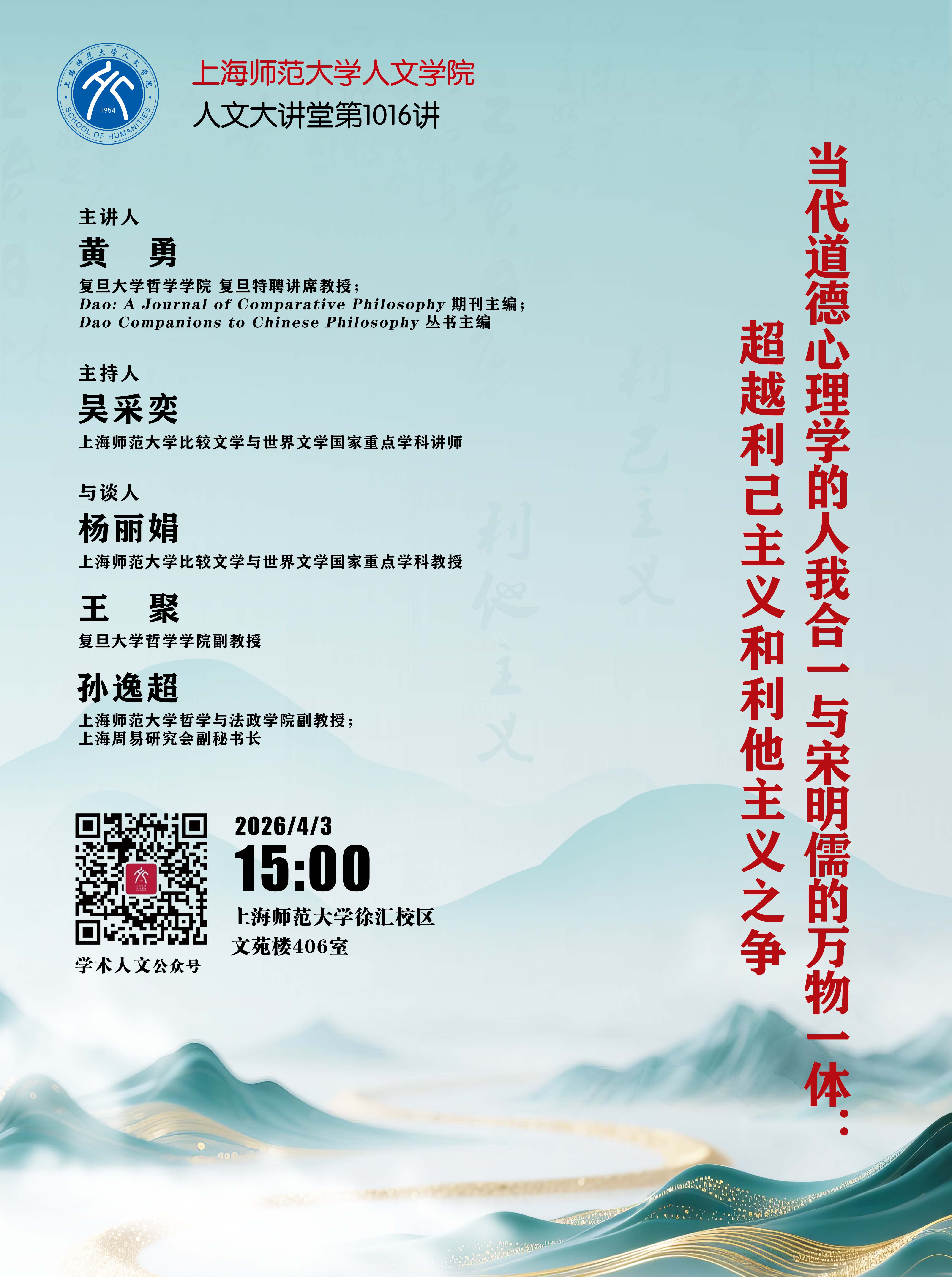 黄勇:当代道德心理学的人我合一与宋明儒的万物一体:超越利己主义和利他主义之争